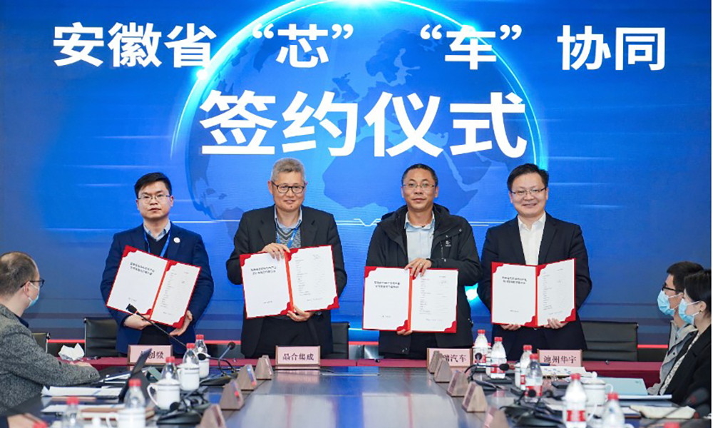 ??會議最后,在安徽省經濟和信息化廳組織下,池州華宇作為省內芯片封裝重點企業,同省內集成電路設計、制造與車企在臺上共同簽署了《產業鏈合作備忘錄》。